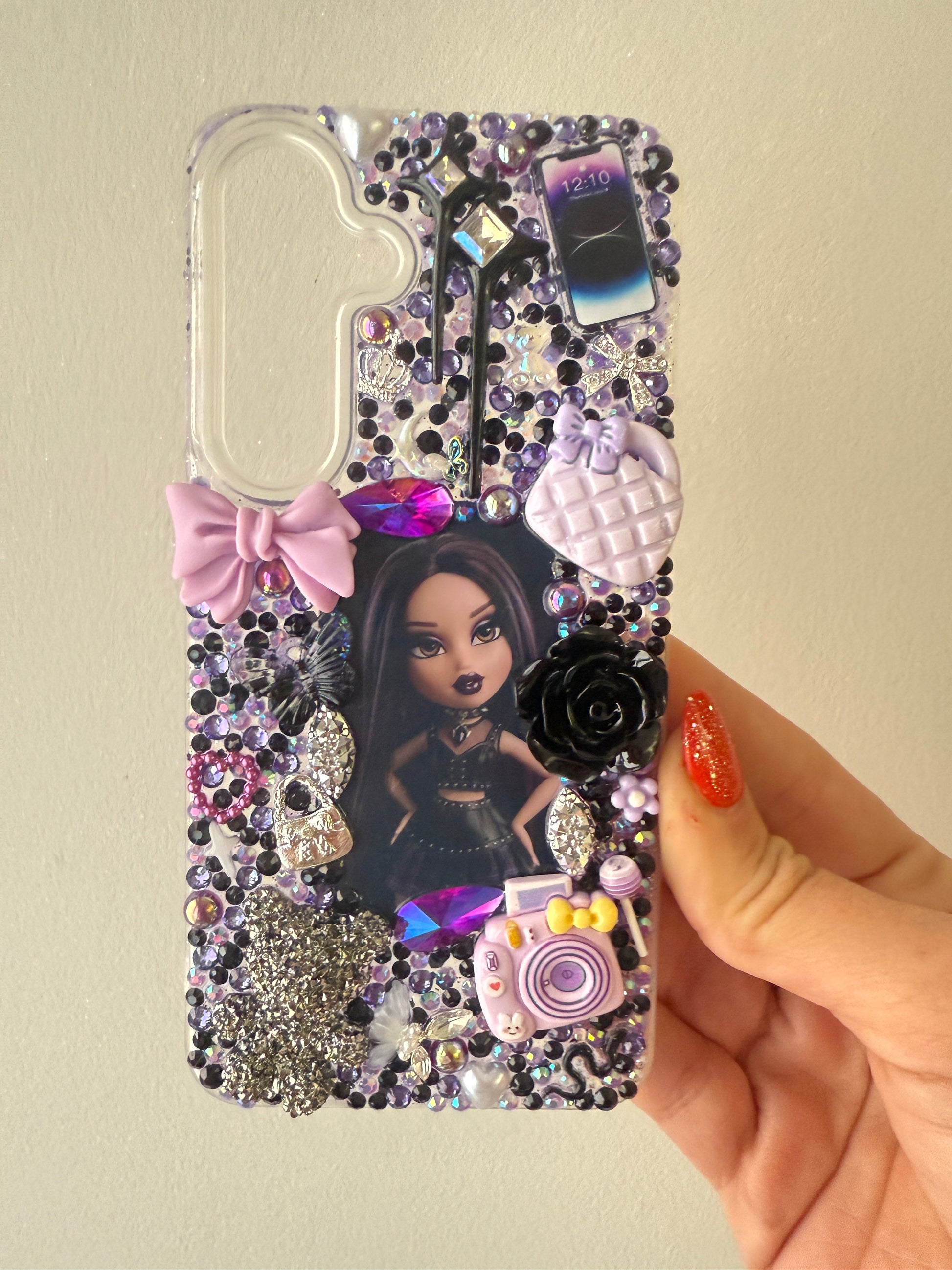 Transformez-vous en icône Bratz et faites graver votre portrait dans une coque en résine premium. Chaque pièce est unique, sublimée par une incrustation abondante de charms scintillants et de strass pour un résultat couture et totalement exclusif. Affirmez votre style !